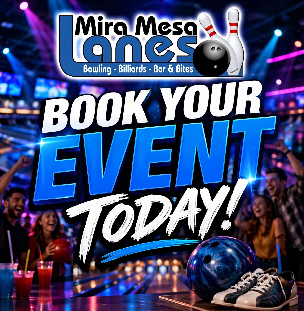 Host your next event at Mira Mesa Lanes- perfect for birthdays, corporate gatherings, team parties and more. Enjoy bowling, great food, and a lively atmosphere all in one place